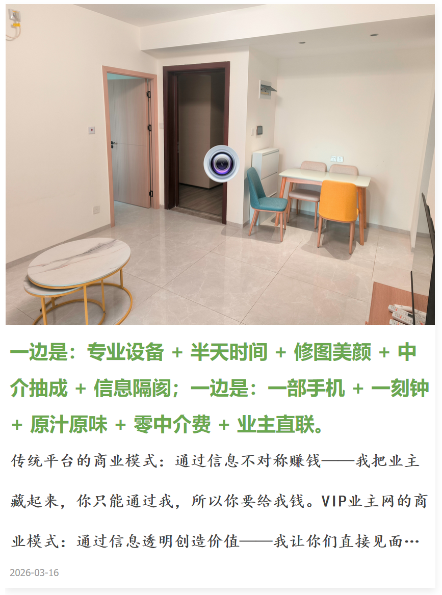 当传统平台还在用工业时代的思维——重设备、长流程、高成本、高抽成——服务用户时,VIP业主网已经用互联网时代的思维——轻量化、去中介、真实感、零费用——重新定义了房产信息发布。