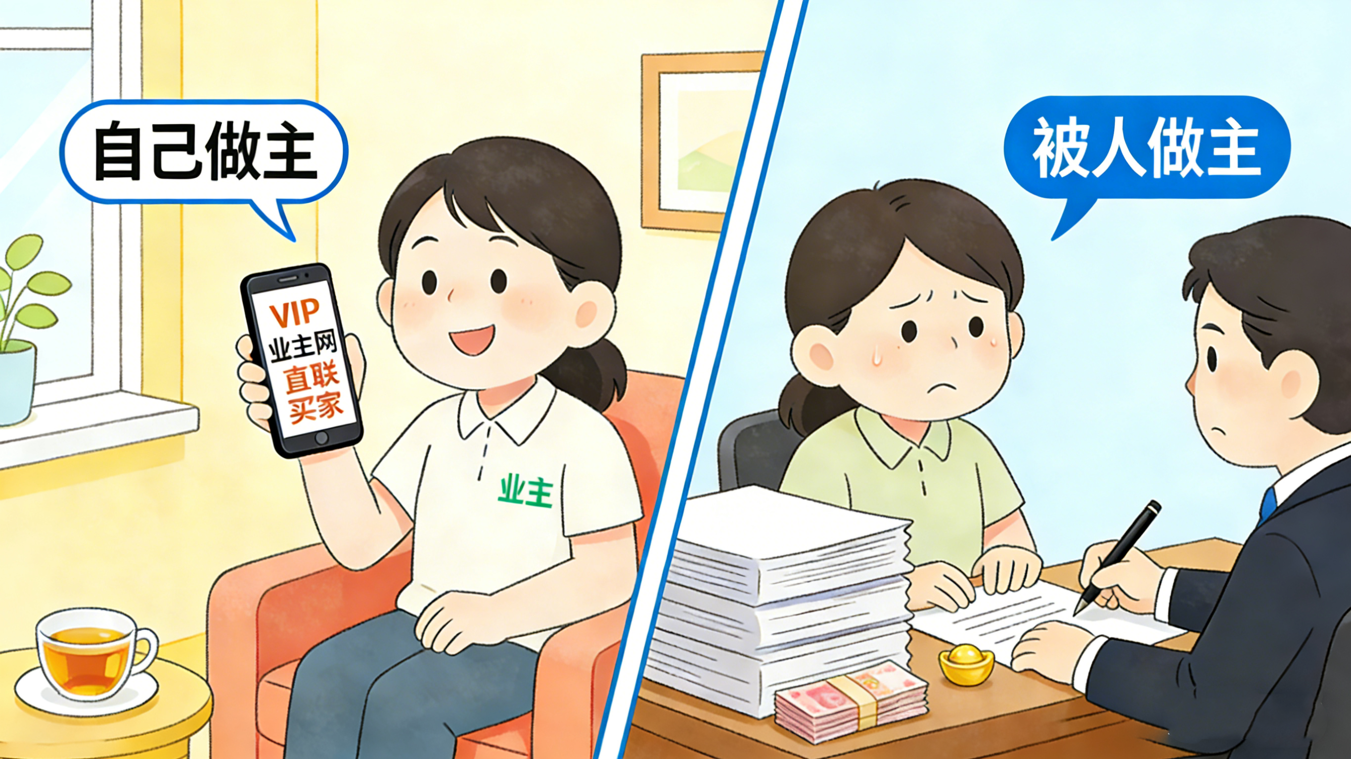 VIP业主网做的,就是把选择权还给业主:想自己卖,我们帮你直联买家;想委托中介,我们也尊重你的决定。因为房子的主人,从来都应该是业主自己。